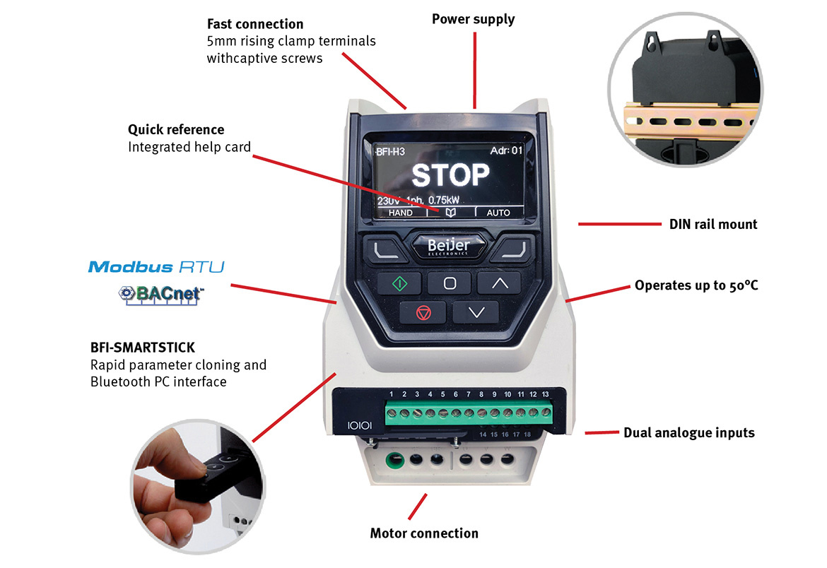 BFI E2 invertörler yenilikçi teknoloji, güvenilirliği, gücü ve kullanım kolaylığını bir araya getirerek düşük güçlü uygulamalara ayrılmış genel amaçlı sürücü sistemleri sunar. Toz geçirmez ve yıkanarak temizlenebilir IP66 dereceli invertörler doğrudan işlem ekipmanınıza monte edilebilir. IP20 dereceli invertörler kontrol kabinlerine veya gerekli korumayı sağlayan makine parçalarına monte edilebilir.
