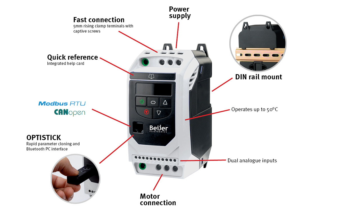 BFI E2 invertörler yenilikçi teknoloji, güvenilirliği, gücü ve kullanım kolaylığını bir araya getirerek düşük güçlü uygulamalara ayrılmış genel amaçlı sürücü sistemleri sunar. Toz geçirmez ve yıkanarak temizlenebilir IP66 dereceli invertörler doğrudan işlem ekipmanınıza monte edilebilir. IP20 dereceli invertörler kontrol kabinlerine veya gerekli korumayı sağlayan makine parçalarına monte edilebilir.