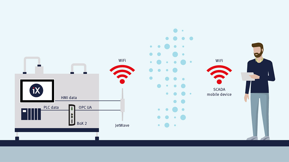 Korenix'in JetWave ürünleriyle kablosuz bağlantı üzerinden PLC ve HMI verilerine kesintisiz bağlantı kolayca kurulur.