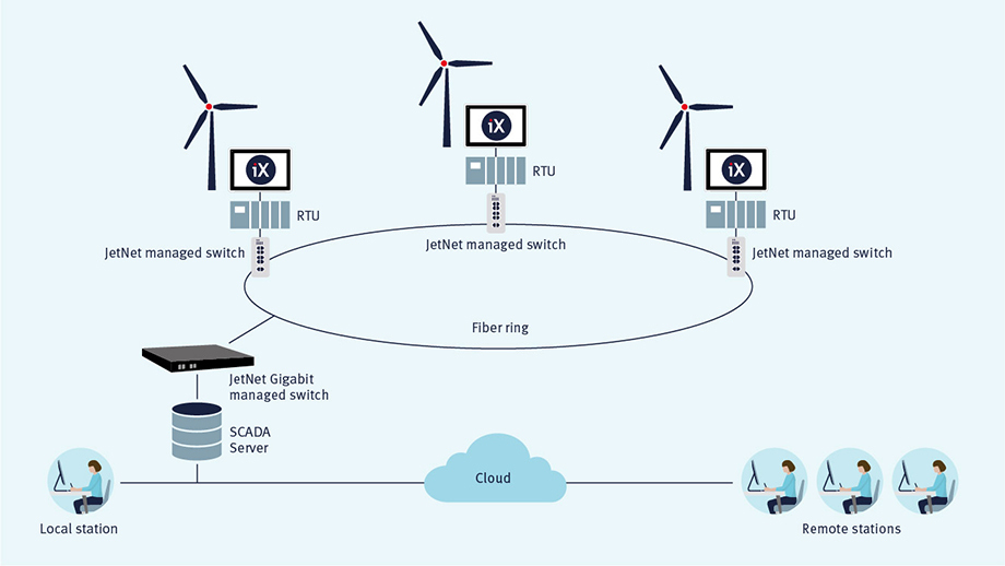 Yüksek verimliliğe sahip esnek bir veri ağı, trafo merkezlerine IEC6180 protokol iletişimini maksimum çalışma süresi ve performansla yönetir.